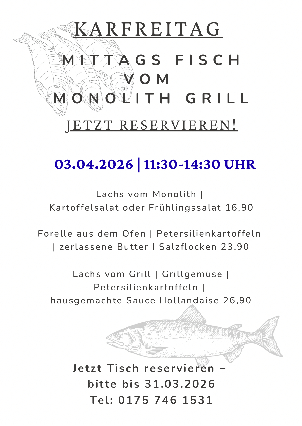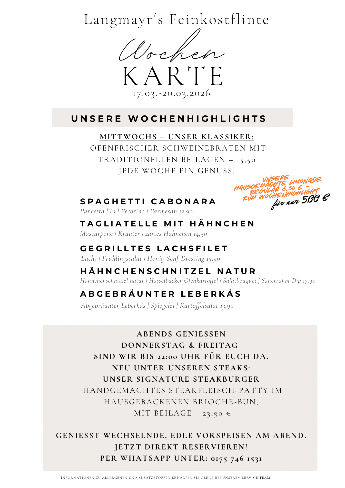 Reservierungen & Bestellungen telefonisch oder per WhatsApp unter +49 175 746 1531
